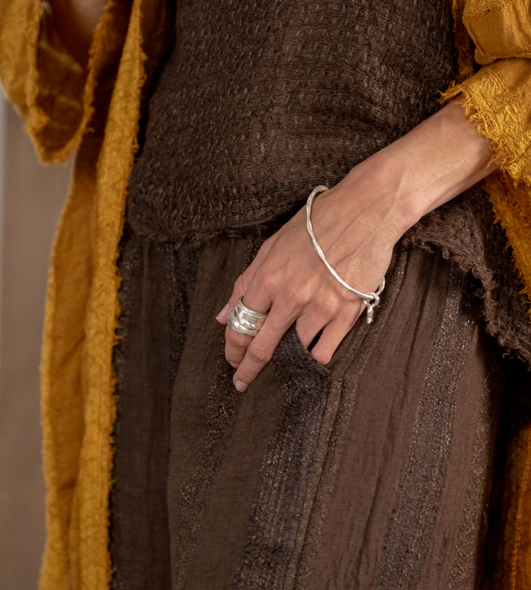 This collection of statement rings, earrings, bracelets and pendants combines bronze with materials including ebony and silver to create an ornate, yet understated style.