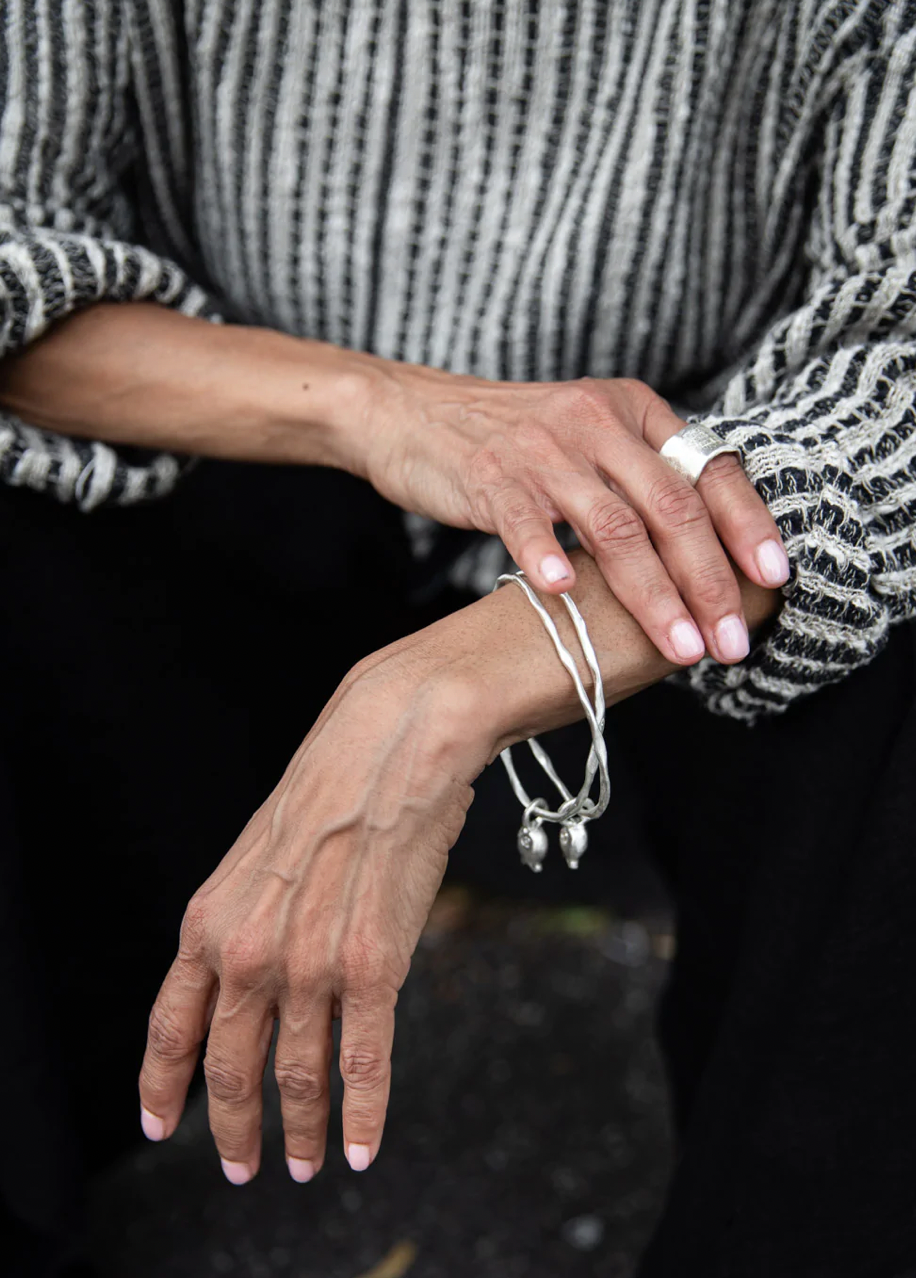 The bronze used to produce the jewellery pieces gives them a rustic, antique feel while their intricate details bear some resemblance to Etruscan works.