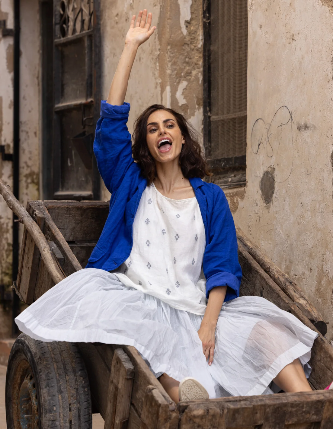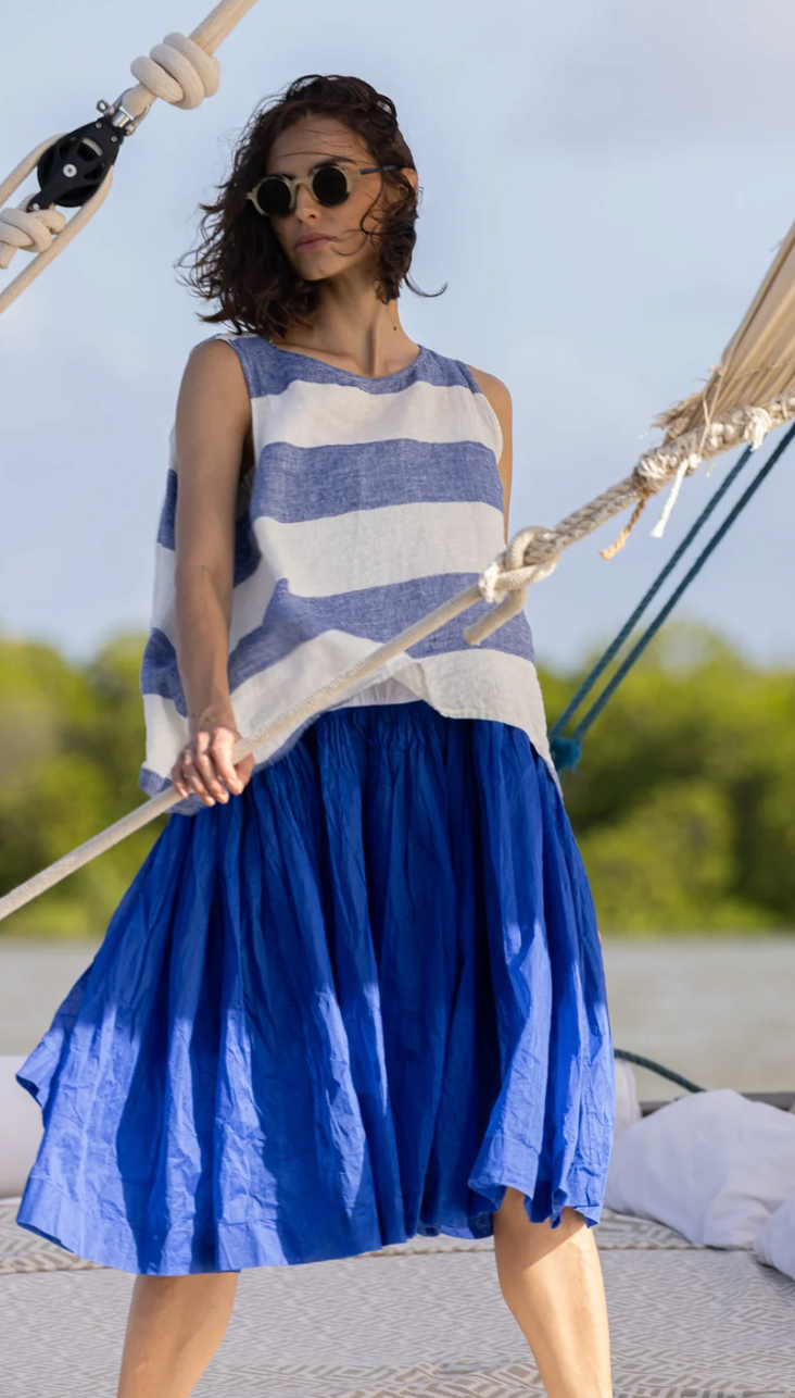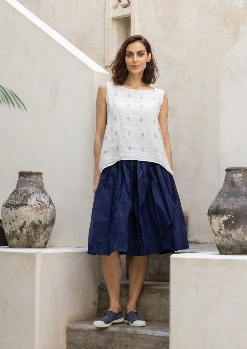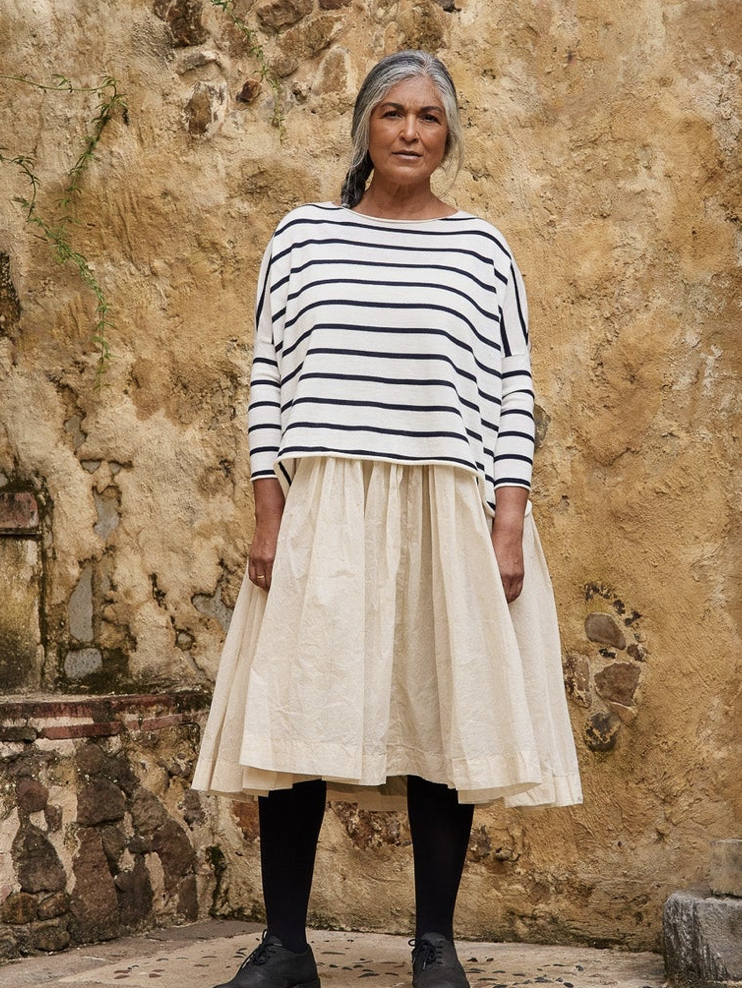 Nyx Tutu Skirt is a modified version of our much loved and classic Tutu Slip, featuring a textured organdy fabric layer over a cotton poplin lining. This design includes a wide, secure elasticised waistband, providing an easy fit and easy styling options. The skirt maintains a structured silhouette while allowing for versatile styling, suitable for a range of occasions from casual wear to black-tie events.